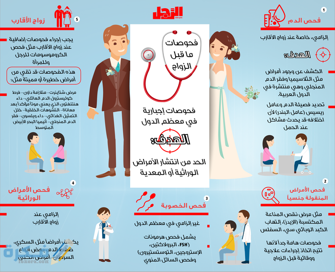 - واختبار الأمراض كالزهري والسيلان، والثآليل، والتهاب المهبل الجرثومي، وجميع هذه الأمراض السابقة هي أمراض وراثية تنتقل من الزوجين إلى الأبناء.